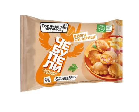 Состав: начинка (ветчина (свинина, мясо цыплят-бройлеров бескостное, вода питьевая, щековина свиная, мясо цыплят-бройлеров механической обвалки, крахмал (кукурузный, картофельный), белковый стабилизатор (шкурка свиная, вода питьевая), смесь посолочно-нитр