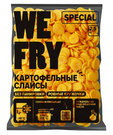 Слайсы WE FRY — аккуратные, ровные кружочки из натурального фермерского картофеля. Идеальная форма для классических и авторских гратенов и новых,необычных позиций меню. Этот простой и удобный продукт без панировки легко готовить любым способом: от духовки до фритюра.Выход готовых слайсов: 79%*.Время приготовления во фритюре: 3 мин. 15 сек.Простой состав без дополнительных ингредиентов панировки.Для эффектной подачи новых блюд: необычная нарезка для большей радости гостей.Идеальный выбор для гратенов.