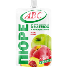 пюре из яблок (яблоки, антиокислитель аскорбиновая кислота), пюре персиковое концентрированное (персики, антиокислитель аскорбиновая кислота), вода питьевая."белки - 0,4 г; жиры - 0,1 г; углеводы - 11 г;энергетическая ценность (калорийность) - 200 кДж
