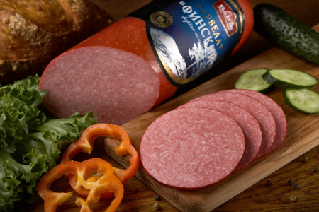 Изумительный тончайший вкус и насыщенный аромат позволяют этому продукту быть одним из самых востребованных у покупателей. Высококачественное сырье, копчение только на натуральной щепе сохраняет вкус легендарного продукта - сервелата Финский.