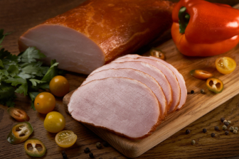 Карбонад Особый содержит минимальное количество жира. Копченый деликатес выигрышно будет смотреться на праздничном столе, официальном банкете или за семейным ужином.