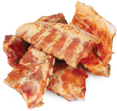 свиные ребра и позвонки, вода питьевая, нитритно-посолочная смесь (соль, фиксатор окраски (нитрит натрия)), регуляторы кислотности (трифосфаты, пирофосфаты, ацетаты натрия, цитраты натрия).