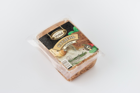 бульон; говядина; желатин пищевой; сахара: декстроза; усилитель вкуса и аромата: глутамат натрия; соль поваренная; консерванты: ацетат натрия, сорбат калия, бензоат натрия, пиросульфит натрия; антиокислитель: лимонная кислота; экстракт натуральной прянос