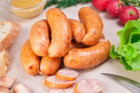 Свинина, шпик, вода, сыр, посолочная смесь (соль, фиксатор окраски - нитрит натрия), комплексная пищевая добавка (соль, стабилизатор: пирофосфат Е450, пряности, экстракты пряностей, декстроза, усилитель вкуса Е621, антиокислитель: аскорбиновая кислота Е30