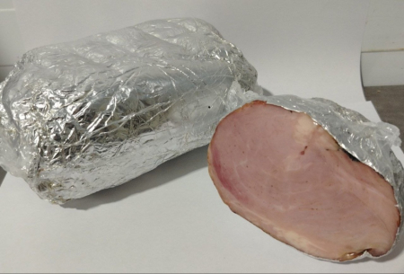 свинина тазобедр.отруб,посолочно-нитритная смесь(соль пищевая,фиксатор окраски,нитрит натрия Е250, вода пищевая, эмульгатор Е433, регулятор кислотности Е451, антиокислитель Е316,перец черный, чеснокБелок 17, Жир 10, Угл 5, кКал 325/ кДж 1360
