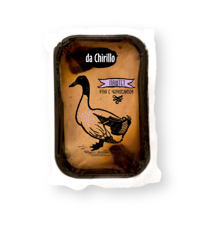 свинина, печень куриная, мясо утки, мясо куриное, вода, посолочно-нитритная смесь (соль поваренная, фиксатор окраски (нитрит натрия), желатин пищевой, чернослив сушеный, эмульгатор (пирофосфат натрия), регуляторы кислотности (трифосфат натрия, ацетат натр