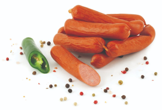 свинина, шпик, мясо индейки, мясо куриноесмесь посолочно-нитритная (соль, фиксатор окраски: Е250), натуральные специи (мускатныйорех, перец душистый, чеснок, перец чёрный, имбирь), усилители вкуса и аромата (Е621, Е627, Е631), (Е316, Е300, Е315,