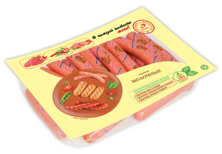 свинина, говядина, вода, молоко сухое, соль, яичный порошок, стабилизатор, пряности, сахар, фиксатор окраски; белок - не более 11г, жира не более 28г, ккал 296.