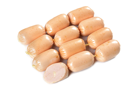 Свинна,шпик вода, филе цыпленка-бройлера, жир говяжий Животный белок,масло сливочное,сыворотка молочная сухая, крахмал картофельный,нитритно-посолочная смесь (соль, фиксатор окраски Е25) регулятор кислотности е450, Е451,Е330,стабилизатор Е452,усилитель в