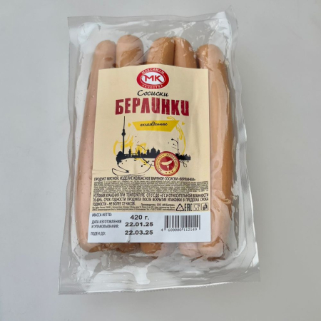 свинина, мясо цыплят-бройлеров, мясо механической обвалки цыплят-бройлеров, вода питьевая, белковый стабилизатор (вода питьевая, шкура свиная), меланж, молочный белок, нитритно-посолочная смесь (соль поваренная пищевая, фиксатор окраски нитрит натрия),