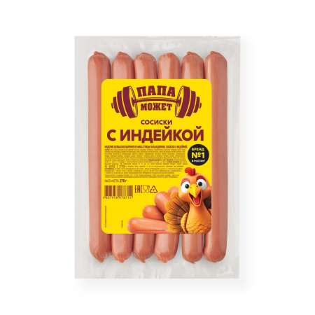 мясо птицы механической обвалки (куриное, индейки), белковые стабилизаторы (куриный, говяжий), филе грудок куриных, вода питьевая, крахмал картофельный, смесь посолочно-нитритная (соль, фиксатор окраски (нитрит натрия)), соль, регуляторы кислотности (пиро