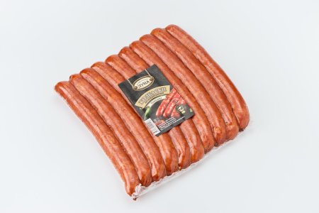 Свинина; курица; шпик свиной; вода питьевая; соль нитритная; соль пищевая; регулятор кислотности: ацетат натрия; сахара: декстроза; специи и экстракты специй: кориандр, перец черный, перец красный, мускатный орех, душистый перец; чеснок; паприка; экстракт