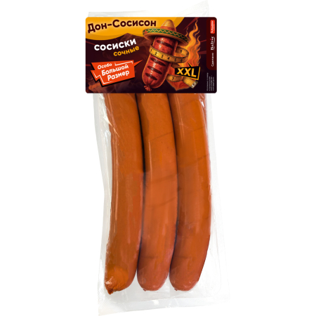 Высококачественные охлажденные сосиски категории Б, обладающие плотной консистенцией и насыщенным мясным вкусом. Это сбалансированный продукт для быстрого перекуса, содержащий достаточно белка и жиров, без синтетических красителей.