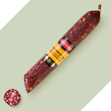 Говядина, шпик, свинина, нитритно-посолочная смесь соль, фиксатор окраски Е250)декстроза,пряности,стартовые культуры микроорганизмов. При хранении допускается естествеенная кристаллизация соли на поверхности продукта.