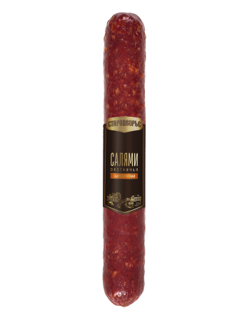 Филе цыпленка-бройлера, шпик хребтовой, свинина полужирная, рубленый фарш из мяса цыпленка–бройлера, соевые гранулы (вода питьевая, соевый изолят, краситель: красный рисовый, пищевая добавка (регуляторы кислотности (ацетат натрия, цитрат натрия 1-зам