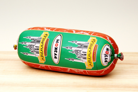 говядина, белковый стабилизатор, вода, белок раст., крупа манная, крахмал, молоко сухое, соль, специи, фосфат, эмульгатор, краситель пищевой, консервант, нитрит натрия, белок 13 г, жир 11 г, кгл. 4 гр, ккал 167 |