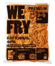 Крупная соломка премиального качества в суперпанировке с ароматными специями. Этот продукт с насыщенным, но сбалансированным вкусом, с нотками паприки, чёрного перца и чеснока, создаст оригинальный акцент. Гарантированно не затеряется ни в сочном бургере, ни на большой тарелке стартеров. В составе — настоящий фермерский картофель и натуральные специи.Выход готового фри: 76%*.Время приготовления во фритюре: 3 мин. 15 сек.В 2,5 раза больше соломок длиной > 7,5 см**.Сохраняет тепло на 30% дольше по сравнению с любым другим картофелем фри WE FRY, отличным от серии PREMIUM.На 20% больше порций в 1 кг по сравнению с картофелем без панировки 9х9 мм.