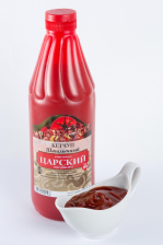 вода, томатная паста, сахар, соль, загустители, специи, уксусная кислота, консервант, подсластитель, пищевой краситель, белок 0.8 г, угл. 10 г, ккал 46.1 г